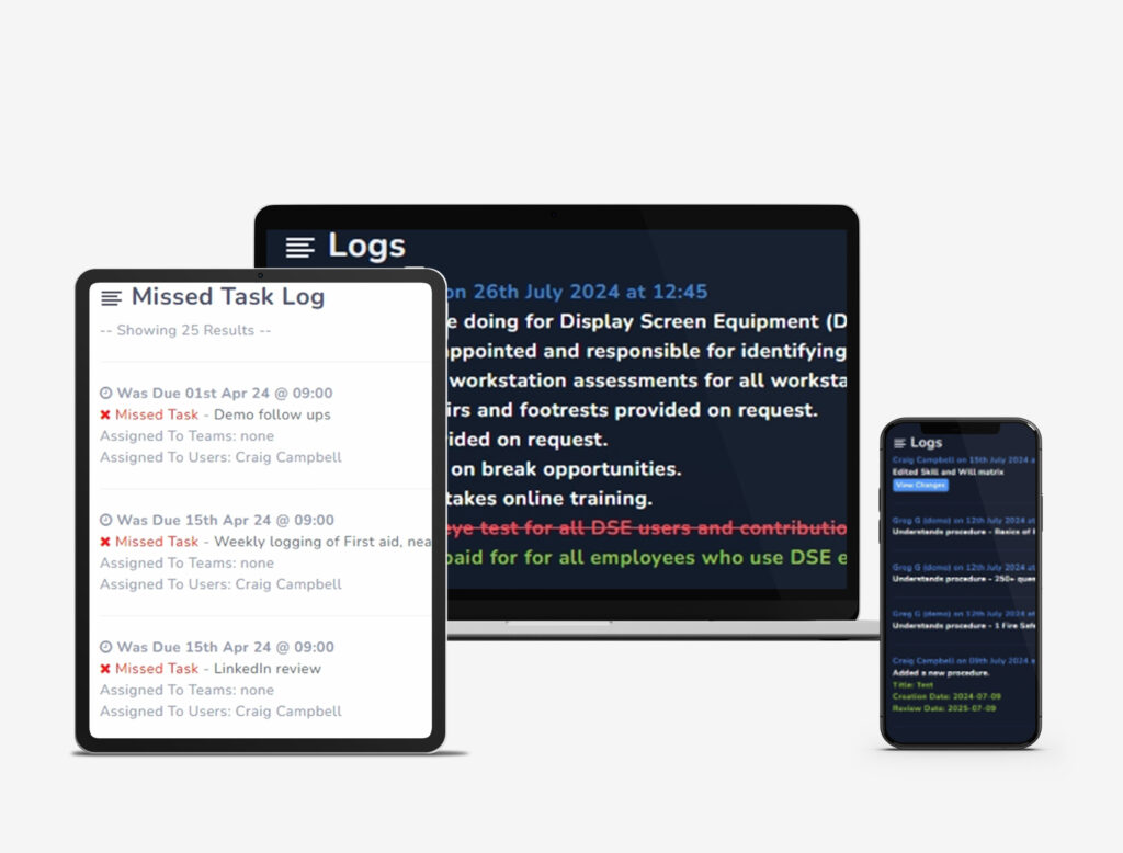 This systematic logging demonstrates operational competence to auditors, inspectors, certification assessors and legal representatives. Organisations face increasing accountability — comprehensive audit trails provide the evidence demonstrating due diligence, systematic management and continuous improvement.