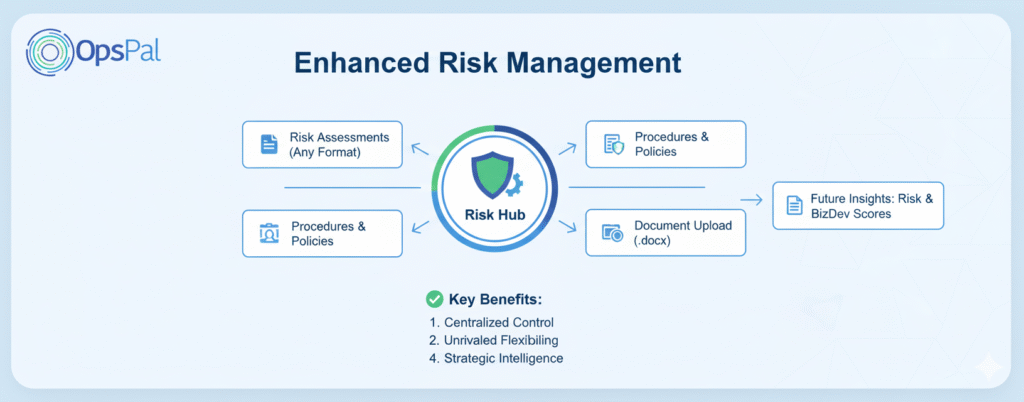 - Quick Start with Document Upload: Get up and running faster than ever! Our new Word document upload feature allows you to seamlessly import your existing risk documents, policies, and procedures directly into OpsPal, saving you valuable time and effort.